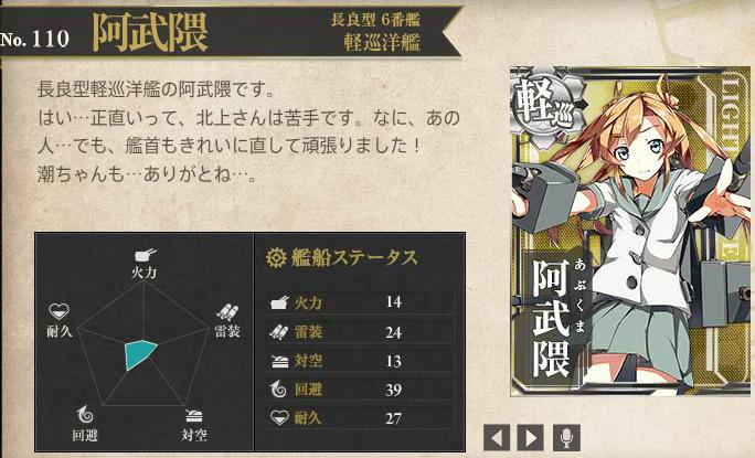 阿武隈まだ持ってなかったんですよ~これでクエできそうですね。