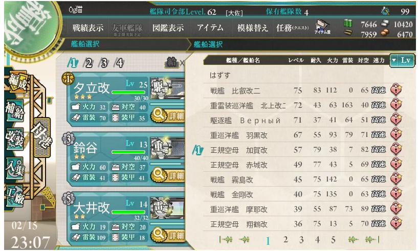 まぁずっと艦隊に入れてれば知らない間に上がるしね。。