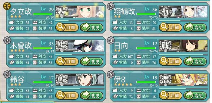 出撃したら小破したりしたので、伊168のドロ狙いでこのメンツ